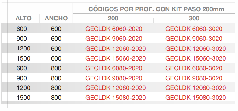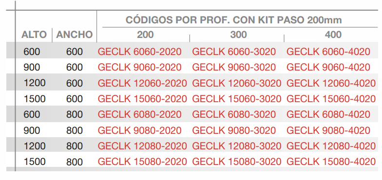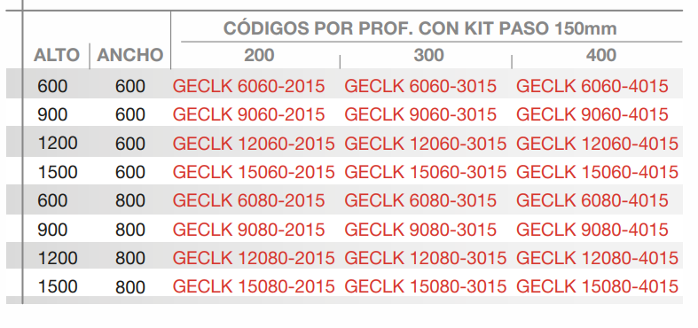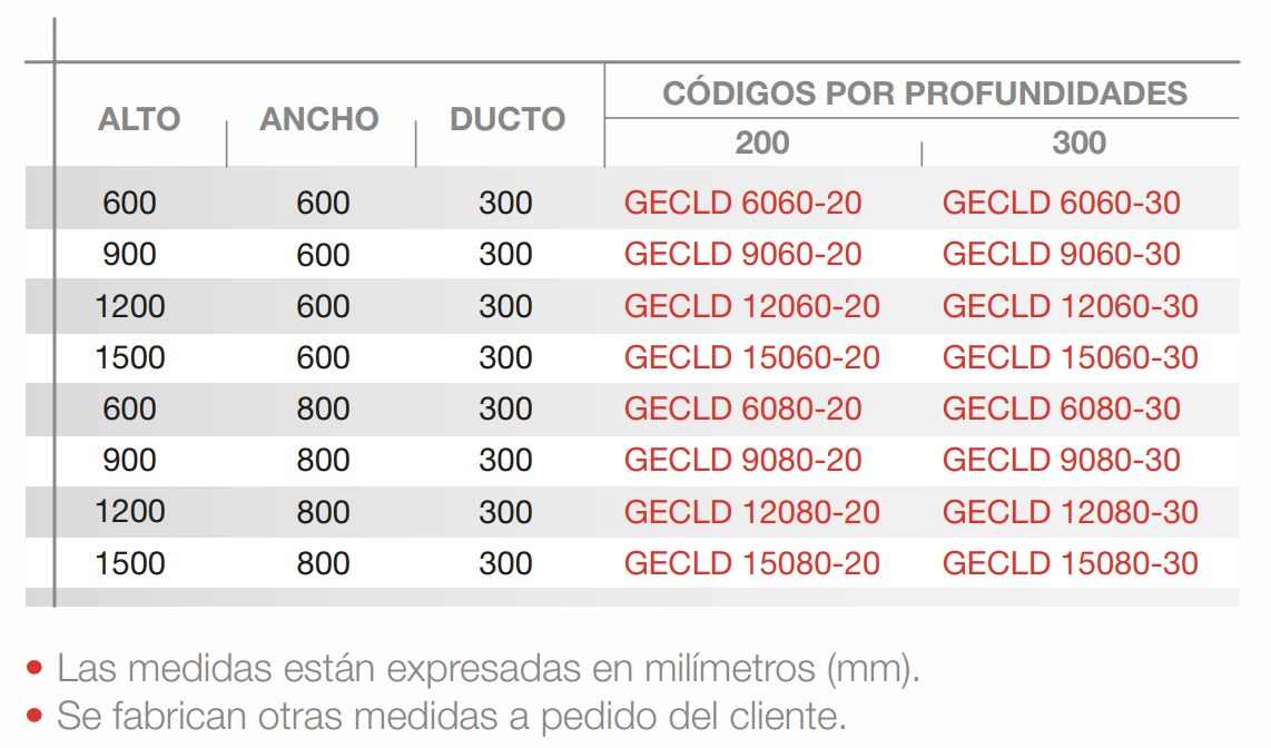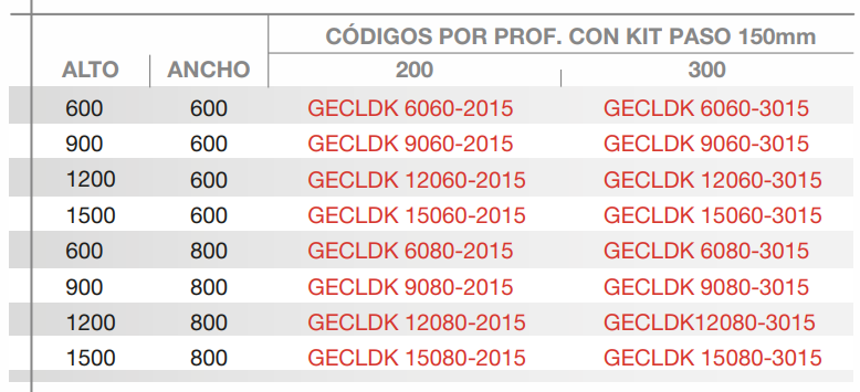 • Esta línea dispone de 3 profundidades que van de 160mm, 210mm a 260mm