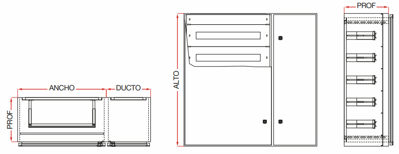 • Diseñado para alojar desde 14 a 168 módulos din según modelo.