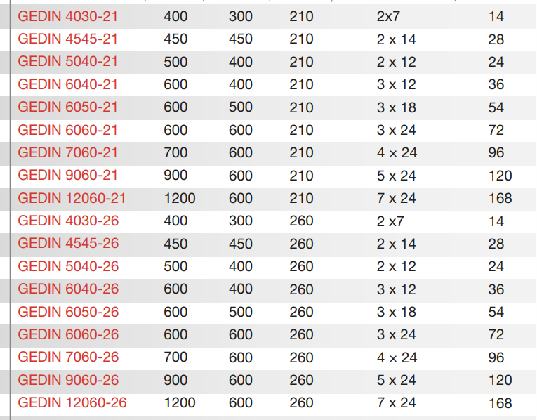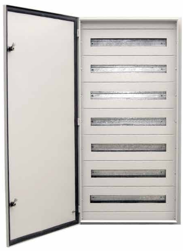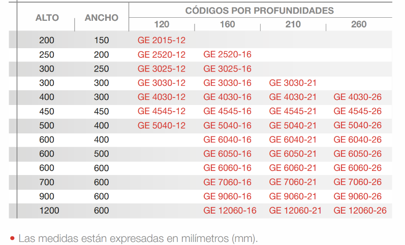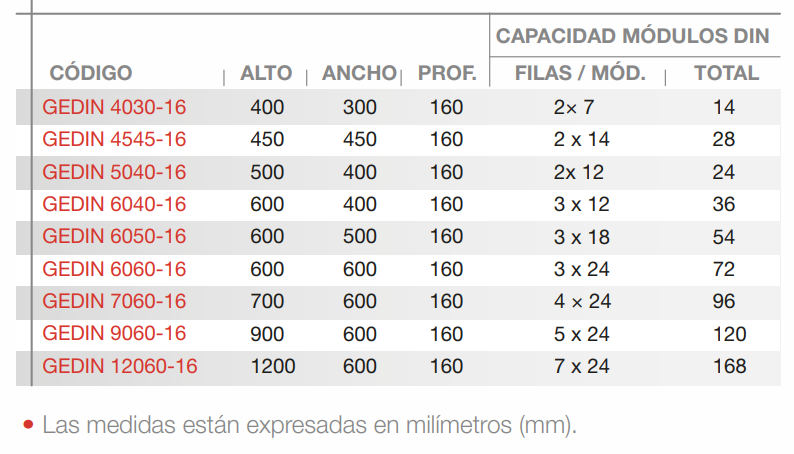 » La línea GEE se diferencia únicamente de la línea GE por su estructura interna. | » Diseñado para alojar desde 10 a 108 módulos DIN según modelo. |