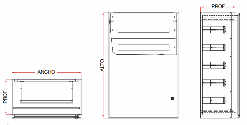 Esta línea ha sido diseñada para alojar termomagnéticas, disyuntores, guardamotores, etc., siempre respetando el formato DIN y brindando mayor espacio interior para acceso y pasaje de cables.