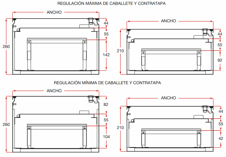 • Cuentan con contratapa abisagrada calada y regulable en profundidad que conjuntamente con la regulación de los caballetes que vienen montados sobre el fondo del gabinete le brindan la posibilidad al instalador de disponer de espacio entre el fondo y la contratapa o también entre la contratapa y la tapa, dependiendo de la necesidad del diseño del tablero.